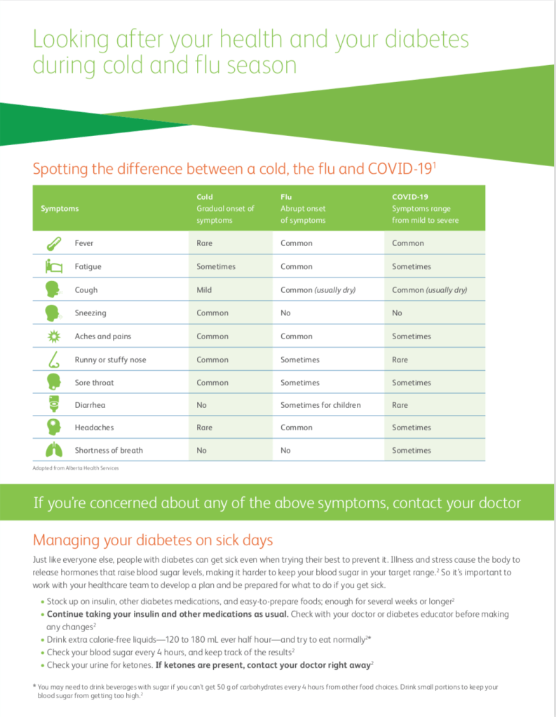 Managing diabetes during the cold and flu season is important. Make sure you are aware of signs and symptoms of the cold, flu and COVID-19.